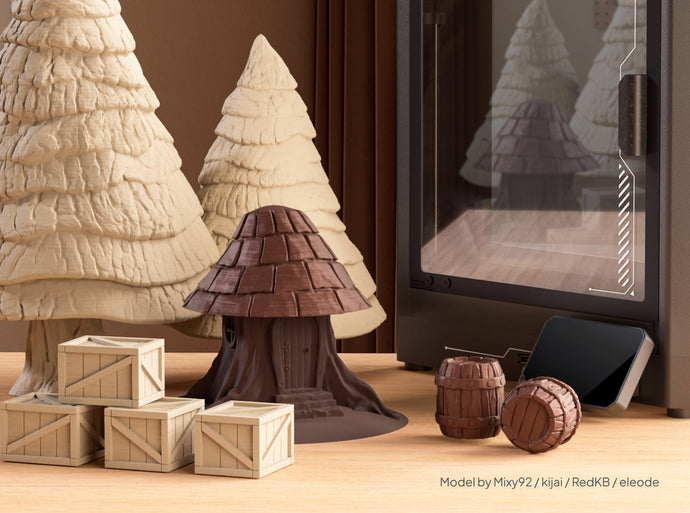 Infused with premium wood powder, Elegoo PLA Wood gives your prints a true-to-life wood aesthetic with natural elegance. Your prints will exhibit a deep, real wood texture, authentic wood tones, and a subtle scent—perfectly suited for artistic projects and handcrafted décor.